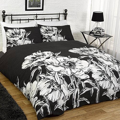 Amelia nero e bianco fiore floreale 4 pz completo set copripiumino trapuntato con angoli elasticizzati, king size