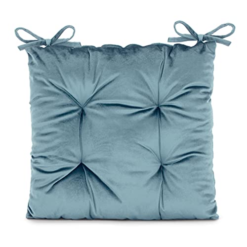 AmeliaHome Cuscino per sedia con nastri, 40 x 40 cm, in velluto, effetto velluto, Aleksa blu