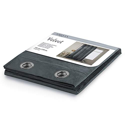AmeliaHome Tenda effetto velluto, 140 x 270 cm, antracite, 1 pezzo, tenda oscurante con occhielli, in velluto, decorazione per finestra, leggera e luccicante