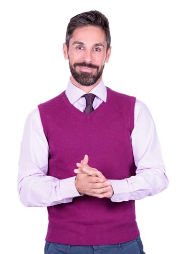 1st American Gilet Collo a V 100% Cashmere da Uomo - Pullover Senza Maniche in Puro Cachemire