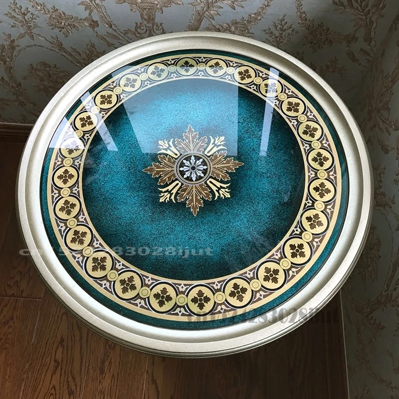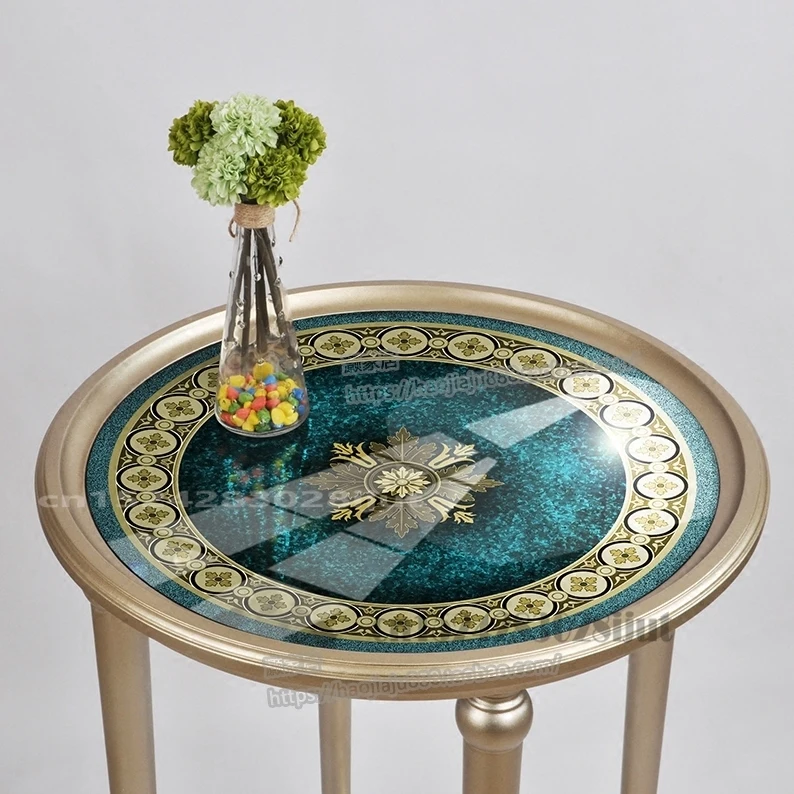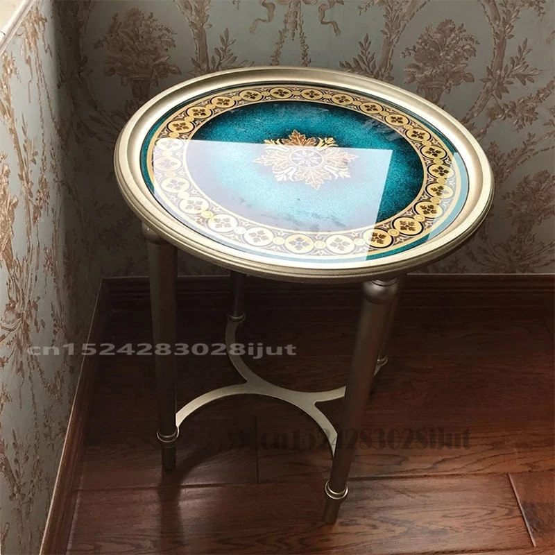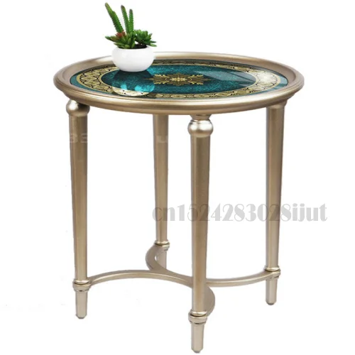American Light Luxury Stained Glass Round Table Sofa Telephone Side Table Living Room Solid Wood Frame Small Coffee Tables