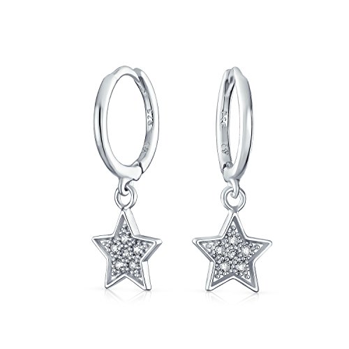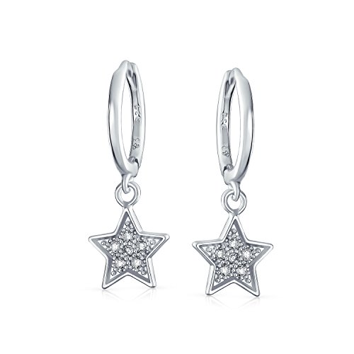 American Patriotic Celestial Rock Star Dangle Charm Sparkling Pave CZ Stars Huggie Hoop Kpop Orecchini per Teen Unisex Women 925 Sterling Silver