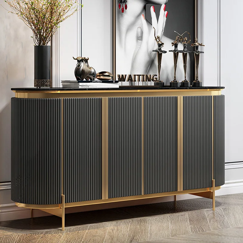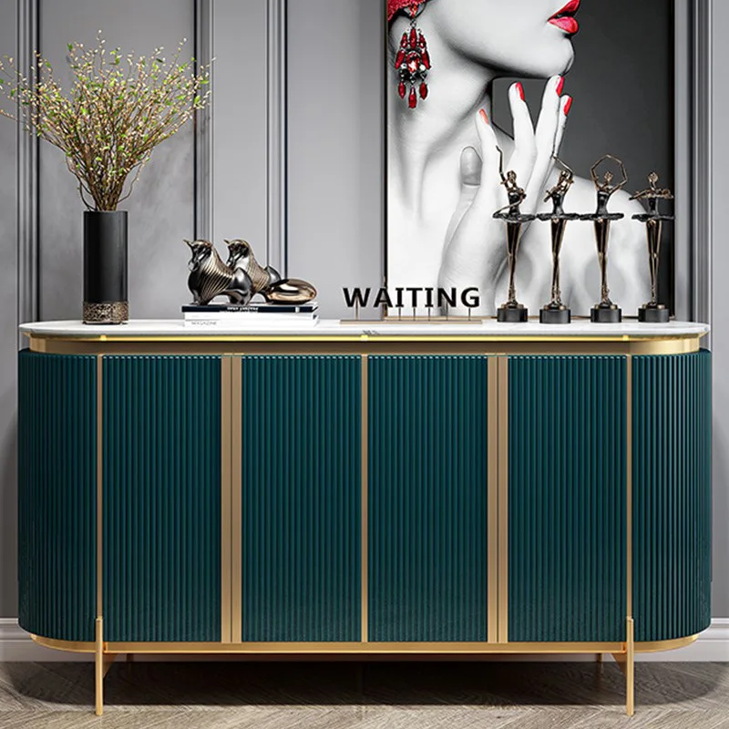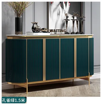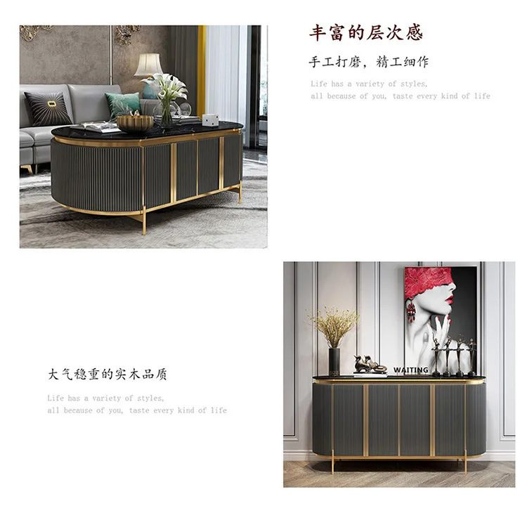 American-Style Solid Wood Porch Cabinet Simple Stainless Steel Marble Console Table Lobby Storage Chest of Drawer