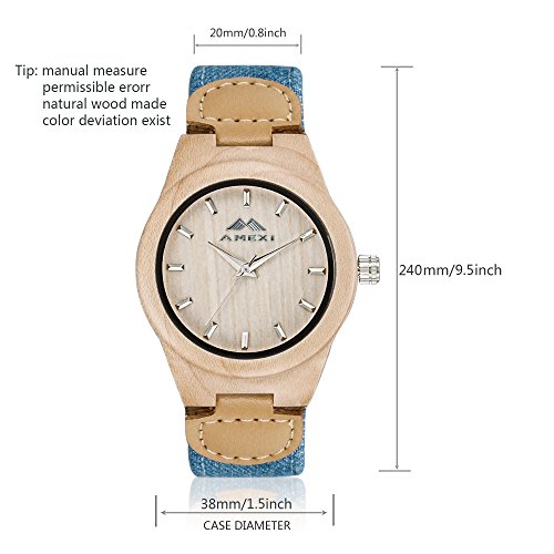 AMEXI Orologi Unisex analogico in legno con tessuto e cinturino in pelle