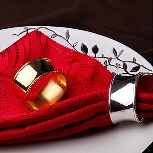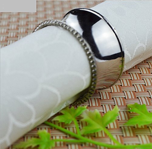 AmgateEu - Set di 4 portatovaglioli in acciaio inox, per cene, feste, tutti i giorni, placcati argento, diametro 4,6 cm