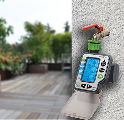 Ecco i timer digitali per rubinetto Rain Amico+, con display LCD retroilluminato ad alta risoluzione da 7,6 cm. Il computer può essere rimosso dalla valvola per rendere la programmazione priva di problemi.