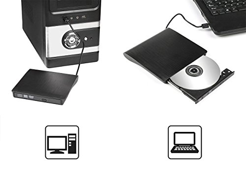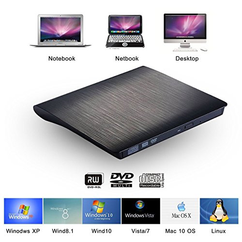 【Grande compatibilità】 L'unità esterna CD/DVD è adatta per PC, laptop - Macbook Windows XP/Win 7/Win 8/vince 10/vista/linux, tutte le versioni di Mac OS.È appositamente progettata per Apple, Hp dell, Lenovo e altre, ultrabook, laptop e desktop senza azionamento hardware.