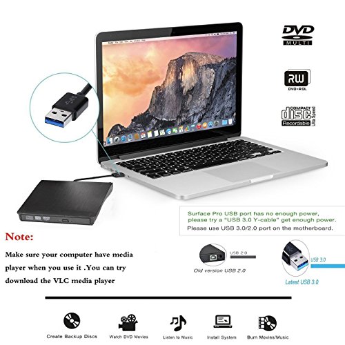 Tecnologia USB 3.0 avanzata: unità esterna CD/DVD tramite interfaccia USB 3.0 ad alta velocità, per una velocità di trasferimento dati veloce (fino a un massimo di 5 GB) e prestazioni stabili con forte tolleranza agli errori. È possibile guardare facilmente CD/DVD, guardare video, riprodurre musica, creare disco, installare software, ecc. è compatibile con USB 2.0 e USB 1.0.