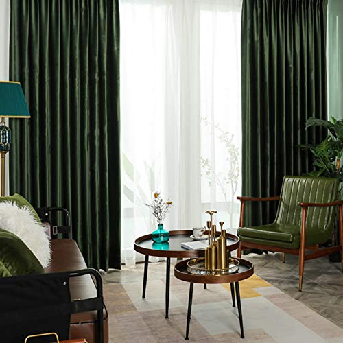 Amidoudou Set di 2 tende oscuranti in velluto verde oliva, per camera da letto e soggiorno (230 x 140 cm, verde oliva)