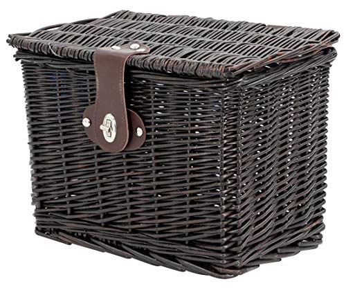 AMIGO Cestino Bici Anteriore 9 Litri - Cestino Bici per la Spesa o Cartella Scuola - Cestino Bici con Coperchio, ergonomico, alla Moda e Fatto a Mano - Marrone Scuro