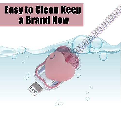 AMIJOUX Cute Waves Proteggi Cavo per Telefoni, 3D Love Heart Charger Data Line Saver per Fai da Te, Set di Protezioni per Morsi di Filo del Telefono Protettivo con Coprispina per La Ricarica