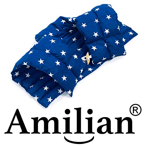 Amilian - Cuscino termico per la cervicale con schienale e collo alto con noccioli di ciliegia, stelline blu