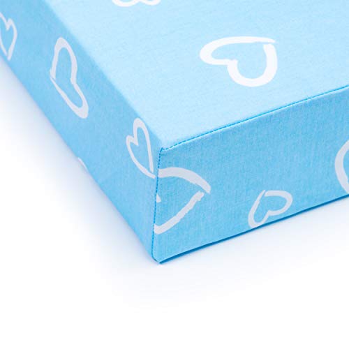Amilian, lenzuolo con angoli elasticizzati per lettino, 60 x 120 cm/70 x 140 cm, 100% cotone, per neonati, misure 120 x 60 cm, motivo: cuori, blu