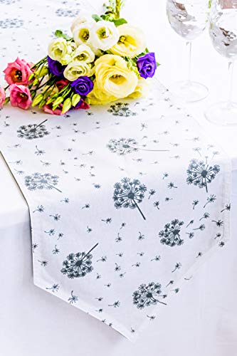 Decorazione per Interni ed Esterni, antimacchia, 100% Cotone, Coperta Moderna per Esterni, 180 x 33 cm, Modello: Dente di Leone, Bianco Antracite