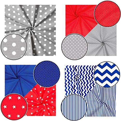 7 pezzi di tessuto di cotone di alta qualità da 50 cm x 80 cm (+/-1-2 cm di differenza a causa della misurazione manuale). Materiale di alta qualità, 100% puro cotone, prodotto in UE. Perfetto per progetti di cucito, artigianato e patchwork. Ottima qualità. Il tessuto non è troppo morbido, non è ruvido né troppo spesso e può essere lavorato molto bene. Ideale per il fai da te, per i professionisti così come per i principianti. Il tessuto può essere facilmente tagliato e cucito con macchina da cucire e forbici.