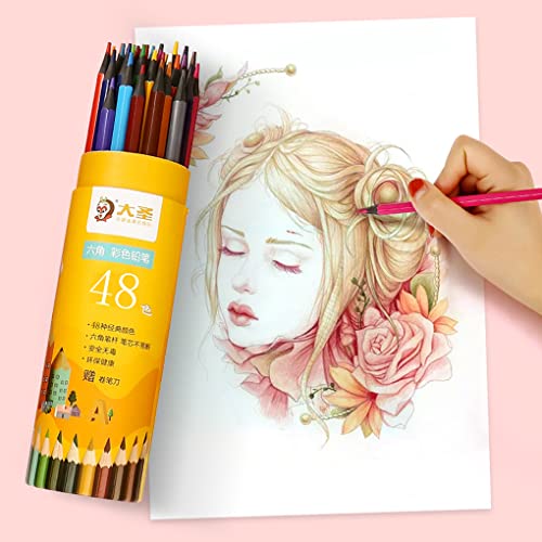 Amindz 48 pezzi Set Pastelli Colorati Esagonali,48 Colori Matite Colorate Professionali,Matite Acquarellabili Professionali,Matite da Disegno per Artisti,Adulti e Bambini