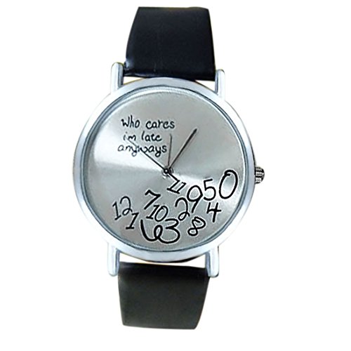 Amison Orologi donna semplice lettera classico, caldo PU pelle orologio, chi se ne frega comunque sono in ritardo (A)