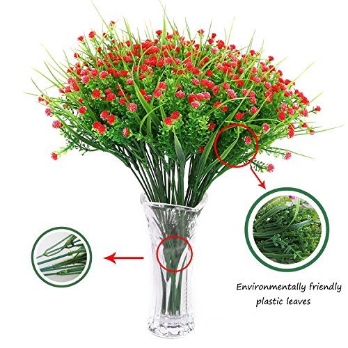 Amkun, piante artificiali, gypsophila artificiale, foglie di arbusti che simulano la vegetazione, centrotavola per matrimoni, composizione floreale, da inserire nel bouquet, 4 pezzi Rose Red