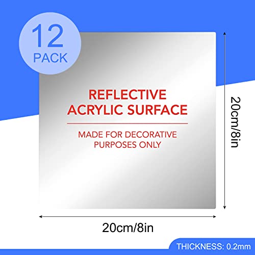 AmkWood 12 Pezzis Autoadesivo Specchio Murale, Flessibile Acrilico Specchio, Specchio Piastrelle Non in Vetro per Bagno, Soggiorno, Decorazione Della Camera da Letto (20x20 cm)