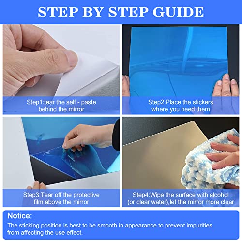 【Dimensioni e materiale】 Gli adesivi a specchio flessibili sono realizzati in materiale acrilico di alta qualità. Misurato circa 20 cm / 8 pollici x 20 cm / 8 pollici e lo spessore è di 0,02 mm, leggero, di dimensioni compatte, comodo da trasportare e riporre.