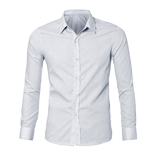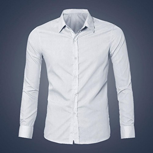 Amlaiworld Elegante Abito Casual Uomo Slim Fit t-Shirt Manica Lunga (M, Bianco)