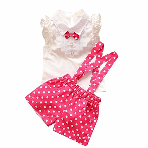 Amlaiworld Vestito per Bambini,Bow Camicia Top + Floreale Polka DOT Strap Shorts Set (130, Rosa Caldo)