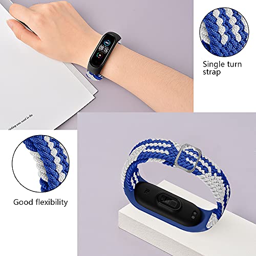Amlope Cinturino Ricambio per Xiaomi Mi Band 5 / Mi Band 4 / Mi Band 6, Bracciale in Nylon Elasticizzato con Tessuto in Silicone Solo Loop Intrecciato per Mi Band 4 / 5 / 6, Blu-Bianco