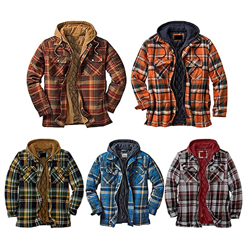 Ammily Giacca trapuntata spessa a maniche lunghe a quadri con cappuccio trapuntato, foderata in flanella con cappuccio e cerniera intera
