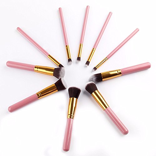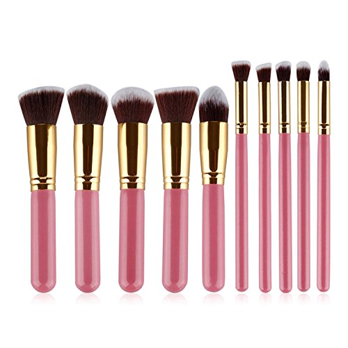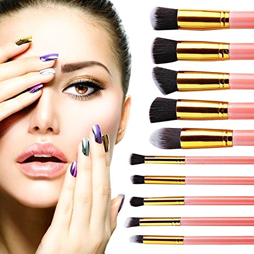 Ammiy, set di 10 pennelli professionali da trucco e kabuki, con impugnatura e setole sintetiche, ideali per applicare fard, correttore, fondotinta e ombretti liquidi, in crema e in polvere, rossetti, e per mescolare diversi prodotti