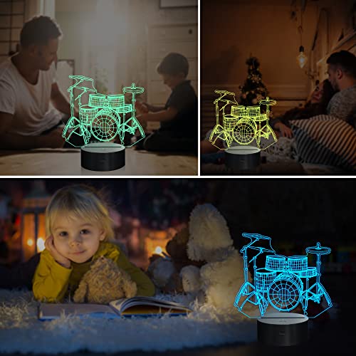 Ammonite Drum Kit Night Light, 3D Kids Illusion Light, 16 telecomando a nastro e timer, ottima scelta per i negozi di decorazione di strumenti musicali