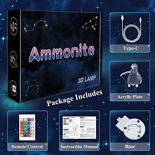 Ammonite Luce notturna a forma di pinguino, 3D animali lampada per bambini, 16 colori che cambiano con telecomando e timer, decorazione per camera da letto per bambini