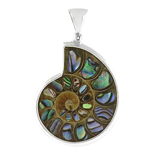 Pendente di ammonite con intarsio di conchiglia come straordinario pendente in argento sterling