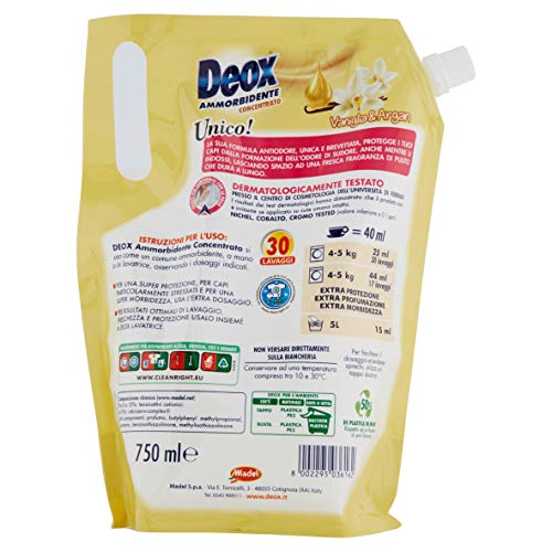 Deox Ammorbidente Concentrato Ecoformato Vaniglia & Argan, 30 Lavaggi - 750 ml