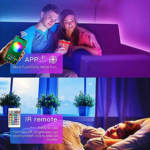 Modalità musica e microfono: le strisce LED Bluetooth dispongono di una modalità musicale intelligente e un microfono integrato con sensibilità regolabile, che consente di organizzare una festa romantica con musica. Il colore delle luci cambia a seconda del ritmo della musica o del microfono. Crea un'atmosfera romantica, meravigliosa e magica per la casa e le feste.