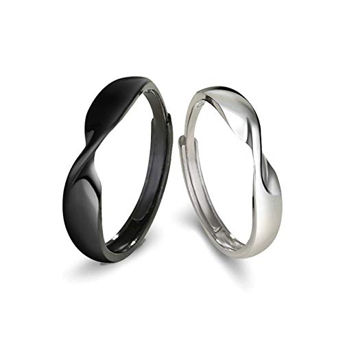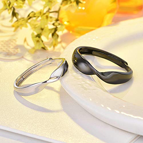 Amody 1 Paio Anello Argento Fedina Regolabile Intreccio del Tessuto Anello Donna Uomo Coppia Anniversario Matrimonio Anelli