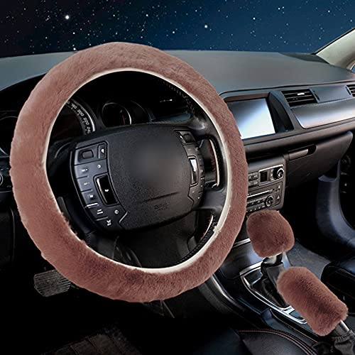 Amokee, coprivolante universale in peluche, set da 3 pezzi, coprivolante telescopico, morbido e confortevole, coprivolante per auto, 36-39 cm (caffè)