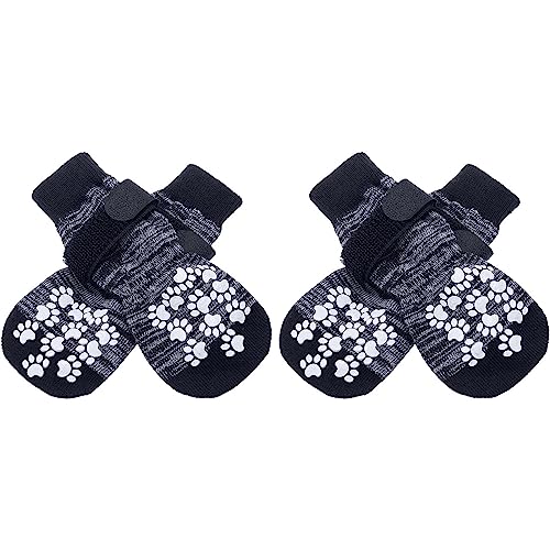 AMOMYDOG Calze per Cani, 2 Paia Calzini Antiscivolo per Cani Gatti, Protezione Zampe Cani con Fondo in Gomma e Cinghie Regolabili, Controllo Trazione per Interni per Cane Gatto (S)