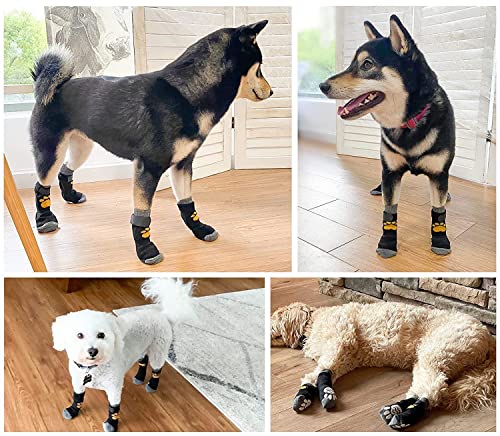 AMOMYDOG Calze per Cani, 4 Pezzi Calzini Antiscivolo per Cani Gatti, Protezione Zampe Cani con Fondo in Gomma e Cinghie Regolabili, Controllo Trazione per Interni per Cane Gatto (M)