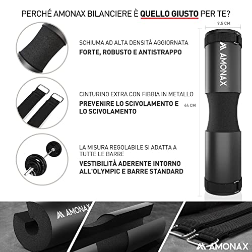 Amonax Barbell Squat Pad Cuscino Bilanciere quat - Collo e Spalle Supporto Pad - Grande per Squat, Affondi, Spinte Dell'anca Allenamento / Esercizi / Allenamento Con i Pesi Fitness (Nero) (Nero)