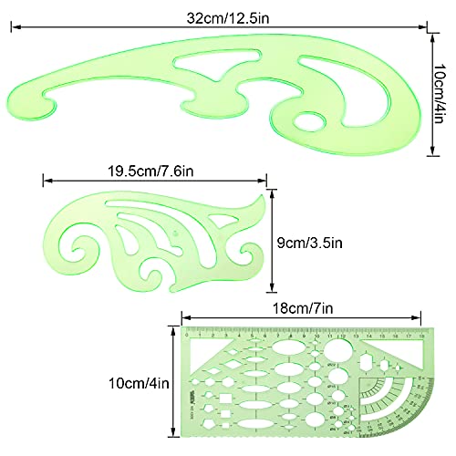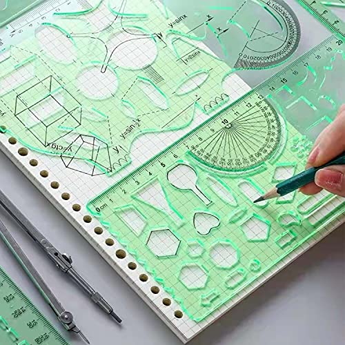 AMONENZ 6 Pezzi Modello di Righello, Multiforme Righello da Disegno, Righelli Geometrici Trasparenti Verdi, Adatto per Disegno, Misurazione, Costruzione, Insegnamento