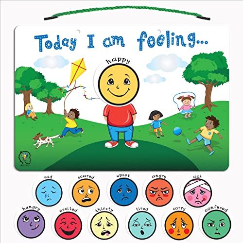 Oggi I am Feelings: grafico luminoso e colorato con 12 carte magnetiche illustrate con tutti i sentimenti ed emozioni differenti in modo che un bambino possa farti sapere come si sente