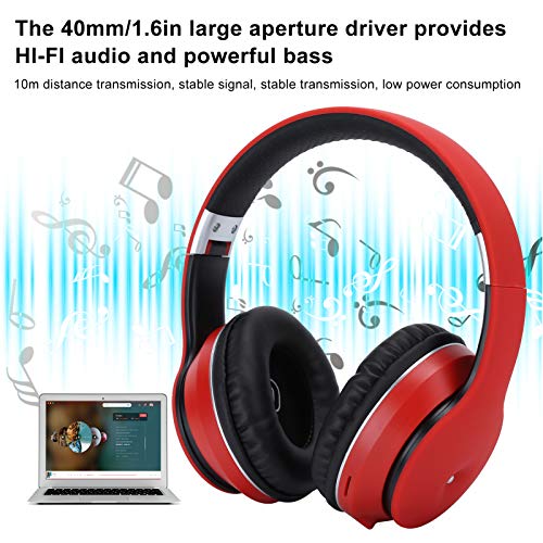 AMONIDA Cuffie Bluetooth Over Ear, Cuffie stereo Bluetooth senza fili MP3 per giochi musicali Computer supportano la scheda di memoria(rosso)