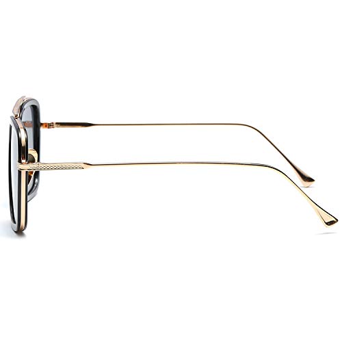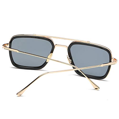 Amorays Edith Lunettes de soleil Tony Stark Retro Square Eyewear Cadre en métal pour hommes Lunettes de soleil femmes Downey (Noir-Non polarisé)