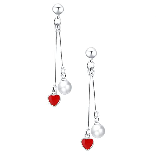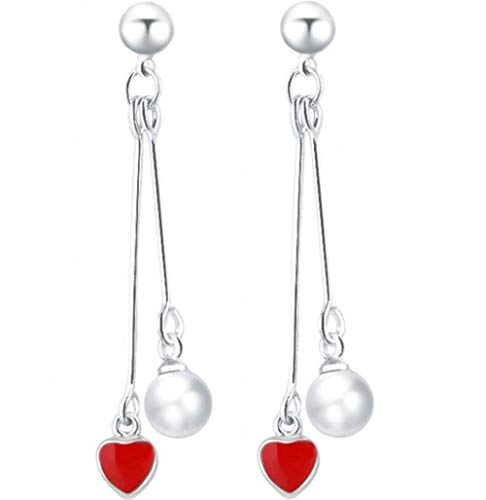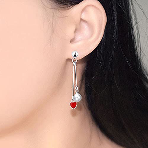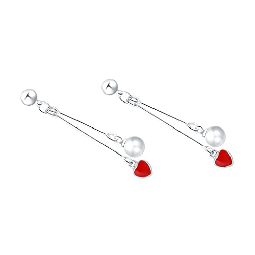 Amore Cuore Pesca Piccolo Cuore Rosso Orecchini Perla Semplice Moda Donna Orecchini Lunghi Pendente Elegante e Popolare Nizza Elaborato