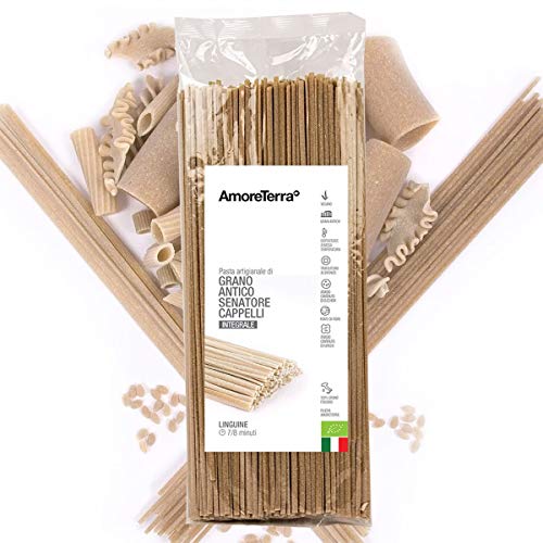 Amoreterra, Pasta artigianale Senatore Cappelli integrale Bio Linguine 500g, Grani antichi, artigianale biologica, trafila al bronzo, essiccata bassa temperatura, farina a pietra in antico mulino