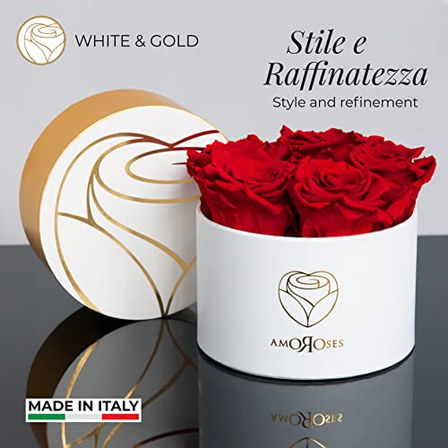 Amoroses Petite - Confezione Regalo 5 Rose Stabilizzate Eterne - Elegante Bouquet di Fiori Veri | Idea Regalo (Petite Scatola Bianca con Rose Rosse)