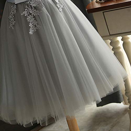 Amosfun Abito da Damigella d'Onore in Pizzo Abito da Ballo Corto Abito da Sera Slim Abito da Damigella d'Onore Abiti da Cerimonia Nuziale sfiancati (Grigio, Taglia XXXL)