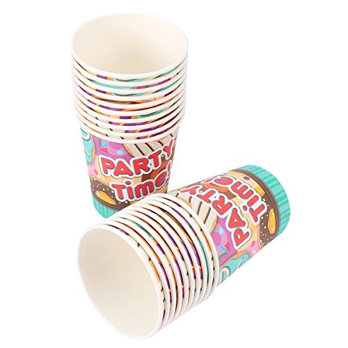 Amosfun 50 bicchieri di carta a tema ciambella per feste di compleanno, usa e getta, per succhi di frutta, forniture per feste, colori assortiti