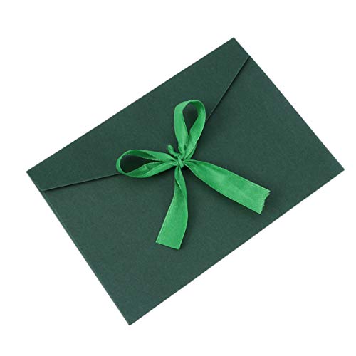 Amosfun - Buste d'invito con fiocco a nastro, per biglietti d'auguri vintage, per matrimoni, compleanni, lauree, feste di nascita, colore: nero 17.5 * 12.5cm Verde scuro