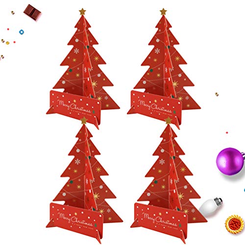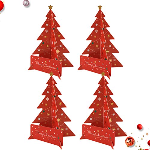 Amosfun 4 Set Cartolina di Natale Carta Pop-up 3D Forma di Albero di Natale Biglietti di Auguri di Felice Anno Nuovo Forniture per Feste di Natale invito con Busta Regalo Fatto a Mano (Rosso)
